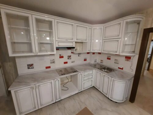 Угловая кухня Греция-05 белый металлик/ гранатовый металлик