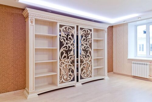 Шкаф купе белого цвета с резьбой - это прекрасное сочетание функциональности и эстетики. Белый цвет придает помещению ощущение простора и света, а резьба добавляет изысканности и роскоши.