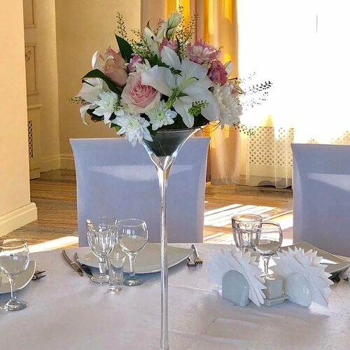 Благодаря вазам, украшенным свежими цветами, столы гостей приобретут особую изысканность и шарм, что несомненно добавит уюта и красоты вашему мероприятию.