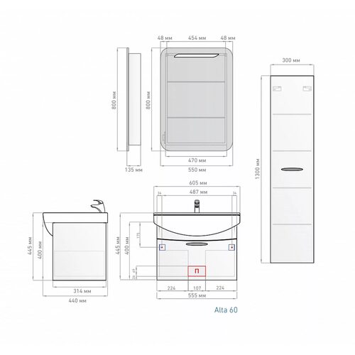 Тумба с раковиной Акватон Америна 60 белая подвесная