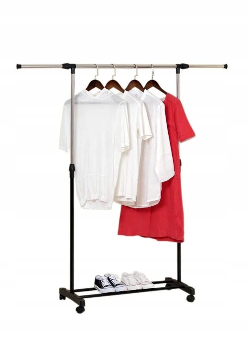 Вешалка на колесах для гардероба - удобное и практичное решение для хранения одежды. Она позволяет легко перемещать ваши вещи по комнате, обеспечивая удобство и функциональность.