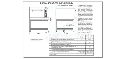 Шкаф жарочный ШЖЭ 2 имеет следующие технические характеристики: