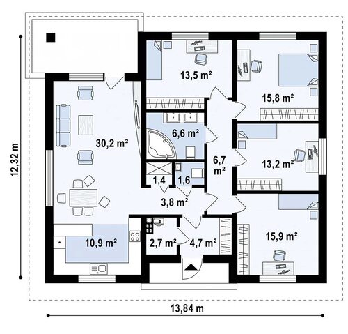 Проекты домов 110-120 кв.м одноэтажный с 4 спальнями