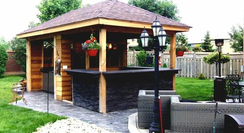 Барная стойка в беседке позволяет создать уютное место для общения, где можно насладиться коктейлями или закусками, а также провести время за увлекательными разговорами. Барбекю же станет отличным решением для приготовления разнообразных блюд на гриле, добавляя вечерним посиделкам неповторимый вкус и аромат свежей еды.