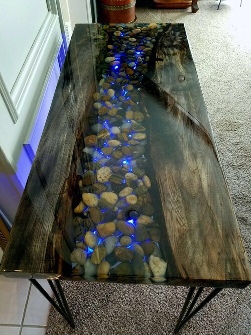 После того как основа стола готова, переходим к подготовке эпоксидной смолы и заливке...