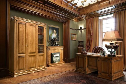 Мебель для кабинета в доме в классическом стиле из массива дерева – это воплощение роскоши и элегантности. Кабинет в классическом стиле всегда ассоциируется с утонченным интерьером, где каждая деталь имеет значение. Выбор мебели для такого пространства является ключевым аспектом при создании атмосферы изысканности и респектабельности.