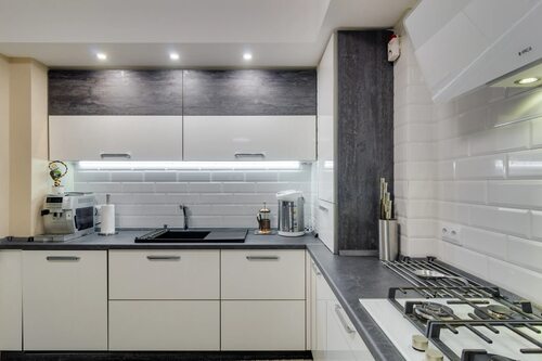 Если вы предпочитаете более классический стиль, белая кухня с серым фартуком также может быть прекрасным выбором. Классический дизайн с элементами изыска и роскоши создаст уютную и элегантную обстановку, которая будет радовать вас каждый день.