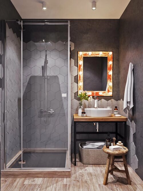 Душевая в темных тонах