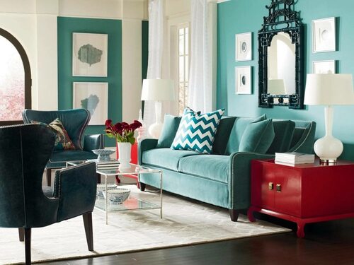 Гостиная в бирюзово красных тонах