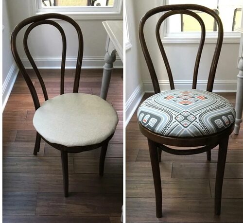 Прежде чем приступить к перетяжке, необходимо подготовить стулья. Очистите металлическую раму от старой обивки и проверьте ее на предмет повреждений. Фото этапа подготовки прилагается.