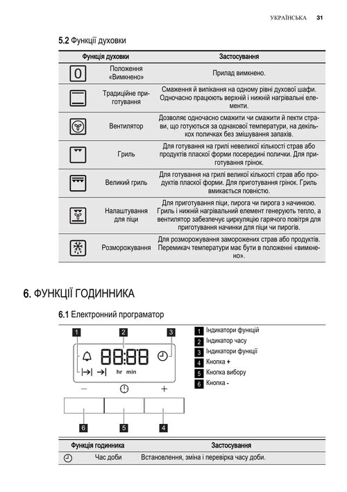Функции духового шкафа Электролюкс