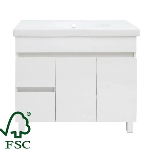 Тумба с раковиной 90 см напольная белая - это элегантное и функциональное решение для вашей ванной комнаты. Этот предмет мебели сочетает в себе стильный дизайн и практичность.