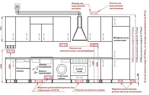Фото 2: Установка розеток на стене над столешницей кухонного гарнитура с учетом высоты использования кухонных приборов.