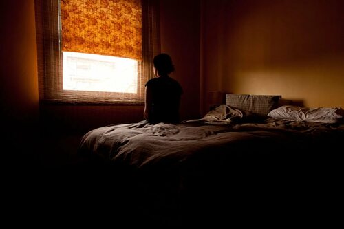 Женщина в постели в темноте