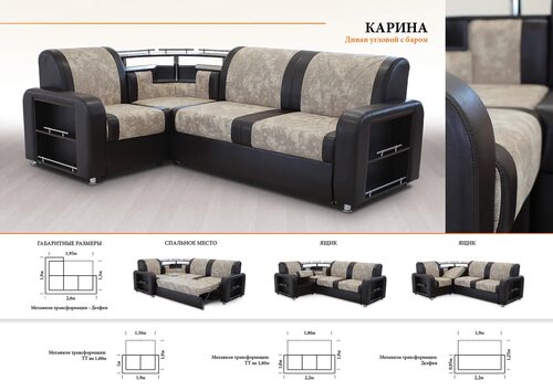 Диван Карина с баром представляет собой удобную и стильную мебель для вашего дома. Он сочетает в себе функциональность и элегантный дизайн, что делает его прекрасным дополнением к любому интерьеру.