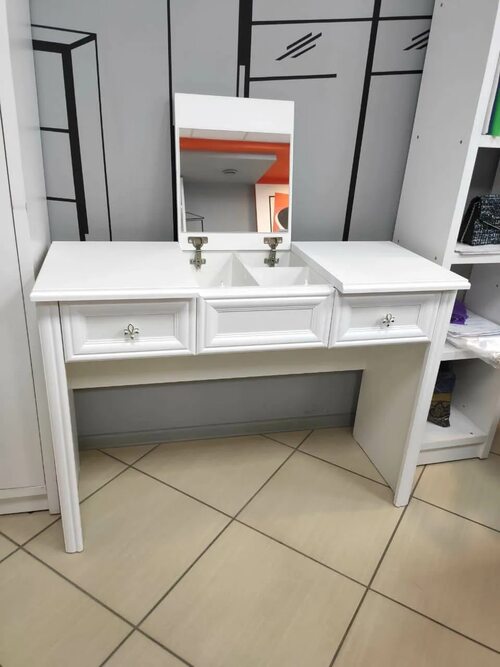 Этот туалетный столик имеет прочную конструкцию из качественных материалов, что обеспечивает долгий срок службы. Он оснащен удобными ящиками и зеркалом, что делает процесс ухода за собой более комфортным и эффективным.