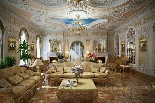 Отделка комнаты в стиле барокко включает в себя использование роскошных материалов, богатую декоративную отделку, изысканные мебельные и декоративные элементы. Кроме того, важным элементом стиля барокко является использование ярких и насыщенных цветов, а также изящных узоров и орнаментов.
