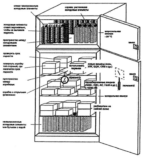 Поэтому следует тщательно следить за тем, чтобы вакцины были размещены на соответствующих полках в холодильнике и соблюдались рекомендации по температурному режиму хранения.