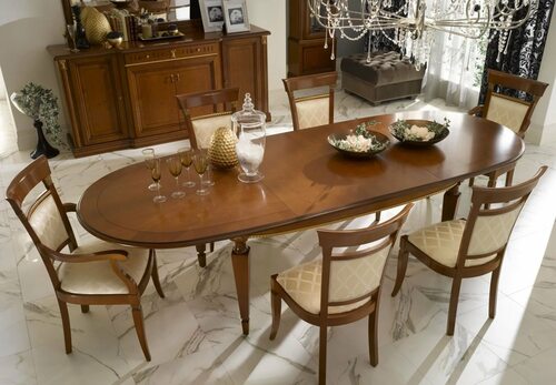Обеденные столы в классическом стиле отличаются изящными изгибами, резьбой и высококачественными материалами. Они придают столовой изысканность и элегантность, создавая атмосферу роскоши и уюта.