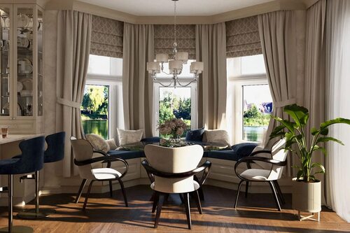 Кухня-гостиная с эркером - это прекрасное решение для загородного дома, которое позволяет сочетать функциональность и комфорт. Этот дизайн создает уютную обстановку и обеспечивает достаточно естественного освещения.