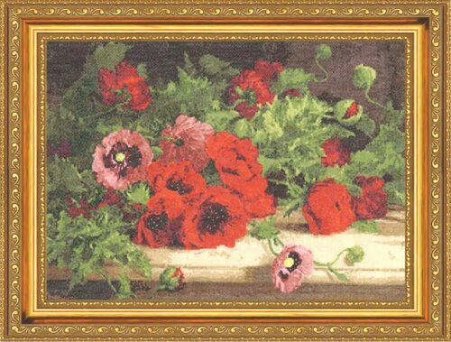 История вышивки крестом насчитывает множество веков. Это древнее искусство было популярно в различных культурах и странах, и с тех пор оно продолжает привлекать людей своей красотой и уникальностью. Вышивка крестом золотого руно маки на столе - это одно из ярких проявлений традиций рукоделия.