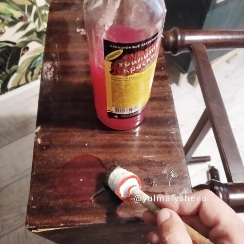 Нанесите димексид на поверхность мебели с помощью мягкой ткани или кисти. Дайте растворителю время на воздействие, обычно несколько минут. Затем аккуратно удалите старый лак с помощью старой тряпки или мягкой щетки.