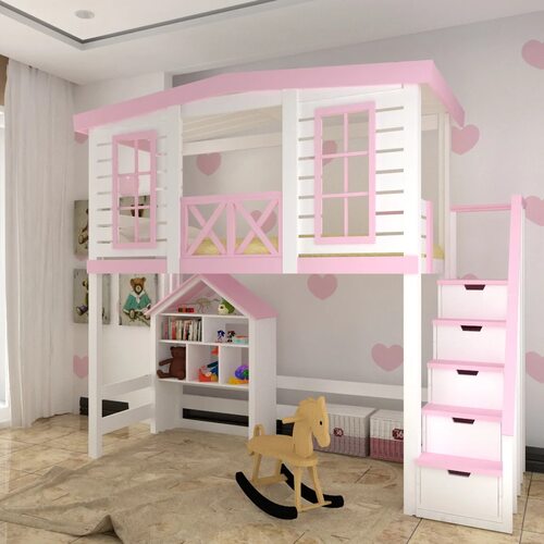 Кровать-чердак с игровой зоной - отличное решение для детской комнаты, особенно для девочек. Это позволяет максимально эффективно использовать пространство, создавая уютное место для игр и отдыха.