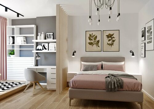 Спальня в скандинавском стиле должна быть функциональной и уютной. Разместите небольшой рабочий уголок, удобное кресло или пуф, чтобы создать уютное пространство для отдыха и работы.