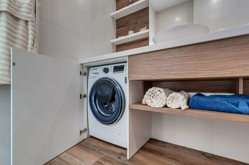Ящик для стиральной машины на кухне является удобным и практичным решением для размещения стиральной машины в небольших кухонных пространствах. Он позволяет эффективно использовать доступное пространство и создать компактную и функциональную зону для стирки белья.
