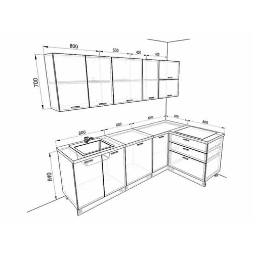 Угловой кухонный гарнитур 2000х1400 схема