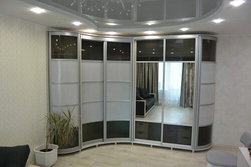 Мы предлагаем ознакомиться с фотографиями радиусных шкафов-купе угловой зеркальной отделкой, чтобы выбрать оптимальный вариант для вашего интерьера.