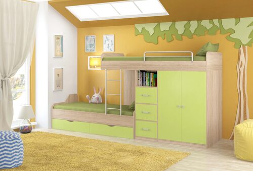 Детская комната - это особенное пространство, где важно учесть все потребности ребенка. Двухъярусные кровати со шкафом и комодом - отличное решение для экономии места и создания уютной обстановки в детской.
