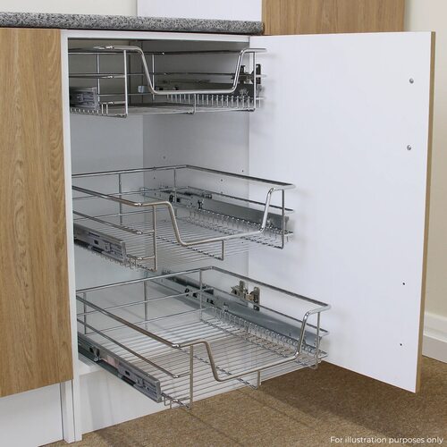 4. Универсальность. Выдвижные ящики сетки могут использоваться для хранения посуды, кухонных принадлежностей, продуктов и других предметов.
