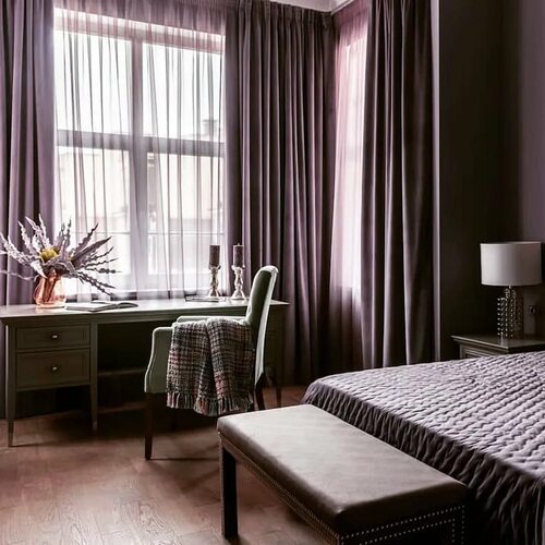 При выборе сиреневых штор для спальни важно учесть не только цвет, но и тип ткани и фактуру. Шелк, лён, вуаль или плотный материал – каждый из них создаст свою уникальную атмосферу в помещении.