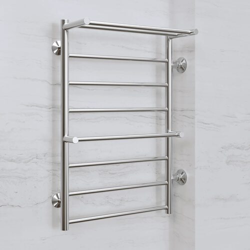 Этот тип полотенцесушителя отличается высокой эффективностью, так как использует тепло воды для сушки полотенец. Благодаря наличию полки, он также предоставляет дополнительное пространство для хранения косметики, мелочей и других предметов, что делает его универсальным элементом в ванной комнате.