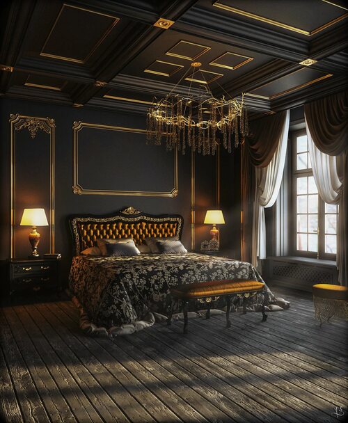 Черно-золотой интерьер спальни является одним из самых роскошных и элегантных вариантов оформления. Этот стиль подчеркивает изысканность, создает атмосферу роскоши и уюта.