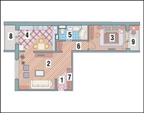 Гостиная в такой квартире может стать универсальным пространством, где объединены зона отдыха, обеденная зона и рабочий уголок. Фотографии различных вариантов дизайна помогут выбрать наиболее подходящий стиль и цветовую гамму.