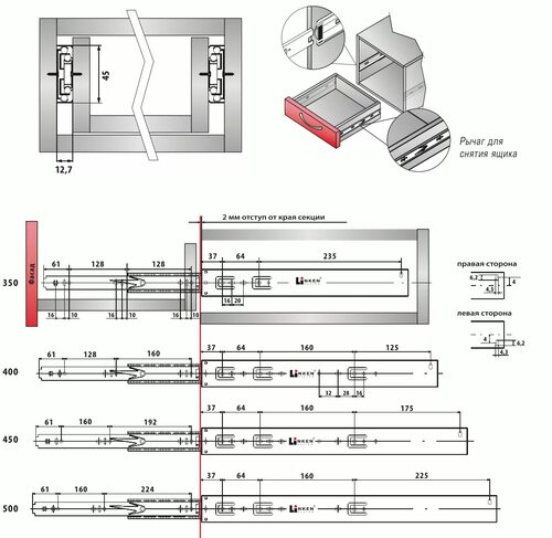 Шариковые направляющие Боярд 350мм схема присадки