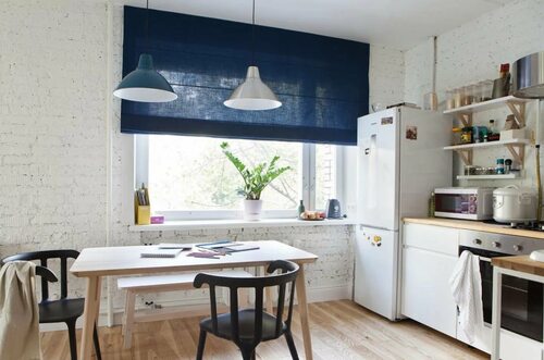 Римские шторы отлично впишутся в интерьер кухни в стиле лофт благодаря своей простоте и функциональности. Они могут быть изготовлены из натуральных тканей, таких как лен или хлопок, что соответствует основным принципам стиля лофт. Благодаря своей конструкции, римские шторы позволяют регулировать количество света, что особенно важно на кухне.