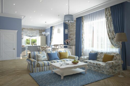Голубая гостиная в прованс стиле - это отличный выбор для тех, кто ценит уют, нежность и романтику в интерьере своего дома.