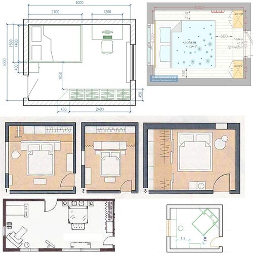 Расстановка мебели в спальне с размерами
