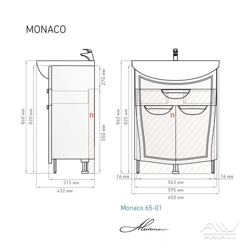 Тумба для ванной комнаты с раковиной Акваль Бали 65 (65.02.02.n), умывальник Норд 65
