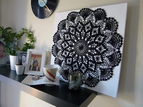 Панно из вязаных кружевных салфеток