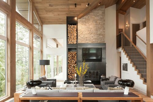 Интерьеры в домах из клееного бруса в скандинавском стиле