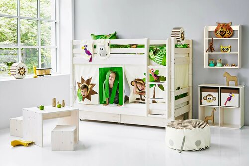 Детская двухъярусная кровать в стиле джунглей обычно выполнена из качественных материалов, безопасных для детей. Она может быть украшена яркими рисунками животных, растений и других элементов, создающих атмосферу дикой природы. Благодаря двухуровневой конструкции, кровать занимает минимум места в комнате, освобождая пространство для игр и развлечений.