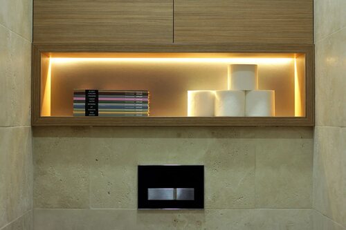 Преимущества светодиодной подсветки полки в ванной