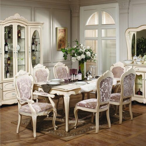 Классические гарнитуры столовой обычно выполнены из дерева или его имитаций. Они отличаются элегантным дизайном и прочностью. Фотографии классических гарнитуров помогут вам найти идеальное сочетание стола и стульев для создания уютного и стильного интерьера.