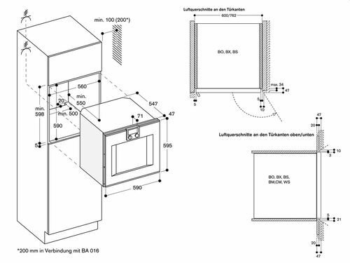 Духовой шкаф Neff b1ace0an0r схема встраивания