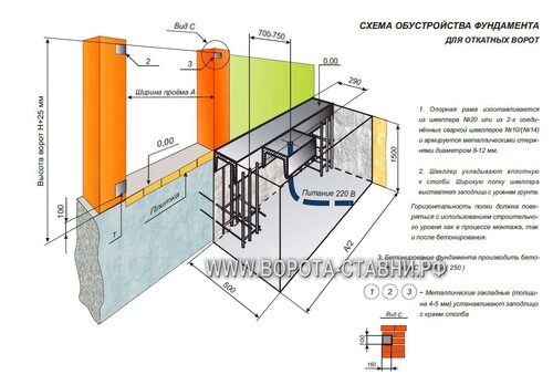 Откатные ворота фундамент чертеж