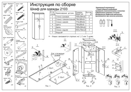 Схема сборки шкафа для одежды 501.09 МД BMS